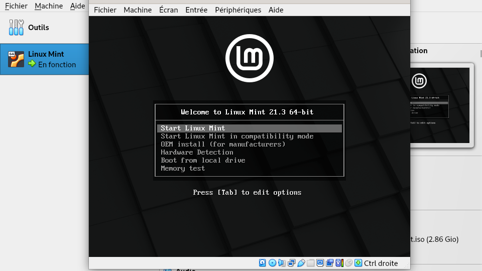 Pour cet exemple, nous allons utiliser l’image ISO de Linux Mint. Linux Mint est une distribution Linux largement répandue. Elle a l’avantage et la réputation d’être facile à prendre en main par les habitués⋅ées de Windows.